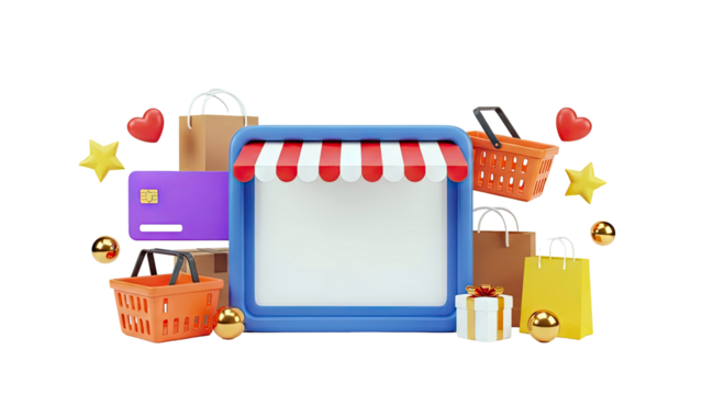 Online Shopping and E-commerce Concept with Storefront and Cart