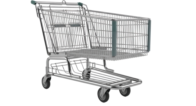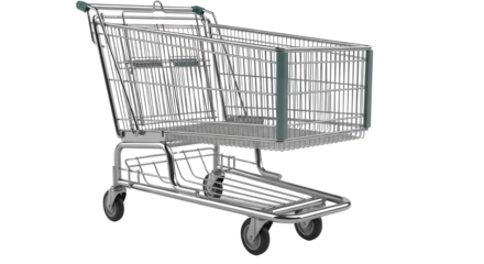 Empty Metal Shopping Cart with Green Accents isolated PNG with Transparent Background