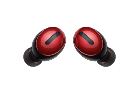 Red wireless earbuds