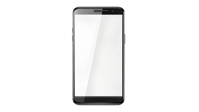 A sleek smartphone with a blank screen showcasing its design on transparent PNG