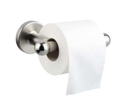 A close-up shot of a standard roll of toilet paper, often used in bathrooms