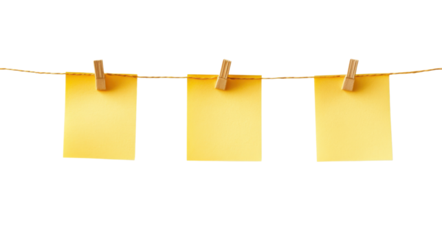 Yellow Paper Post It Notes Attached with Gold Glitter Tape Isolated on White and Png Transparent Background