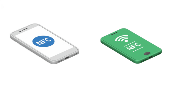 Blank white smart card with an embedded golden microchip isolated on a transparent background