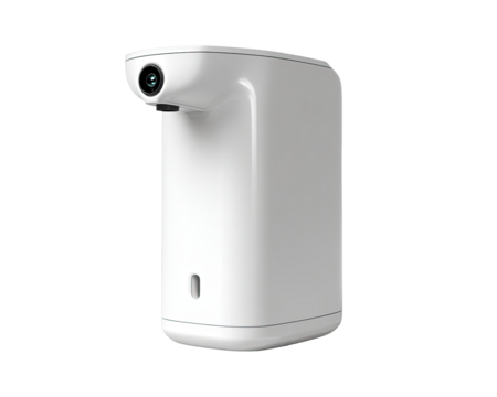White, rectangular, hand sanitizer dispenser with a camera