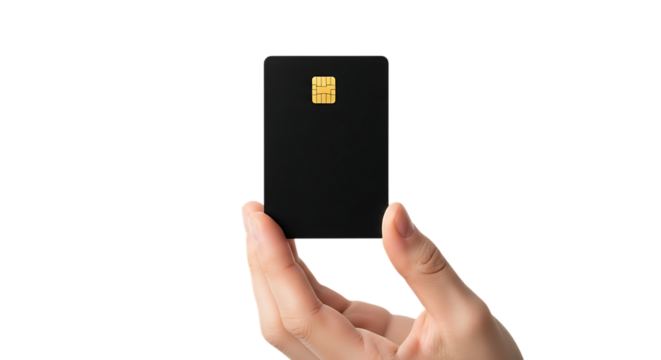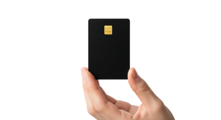 Hand holding contactless credit card on transparent background payment icon