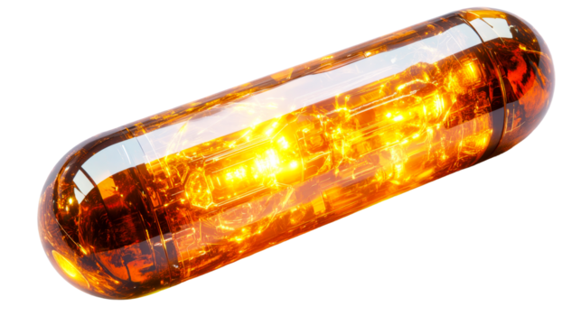 Tilted tumbler with blue beverage and pink stirrer on transparent background