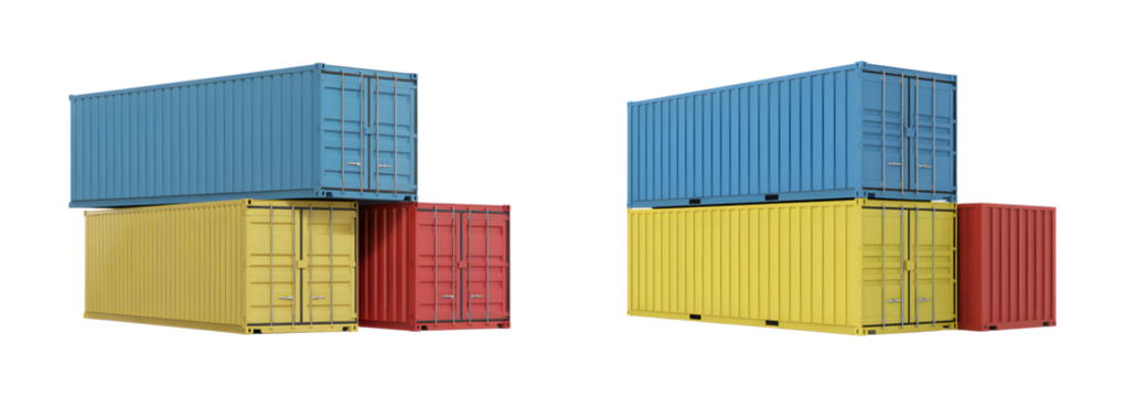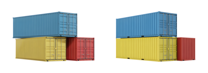 Stacked cargo shipping containers for logistics and freight transport isolated on transparent background