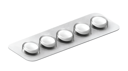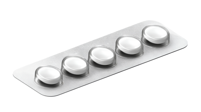 Close up of various blister packs containing red, yellow, and white pills, showcasing different medication types and colors. image highlights organized arrangement of packs