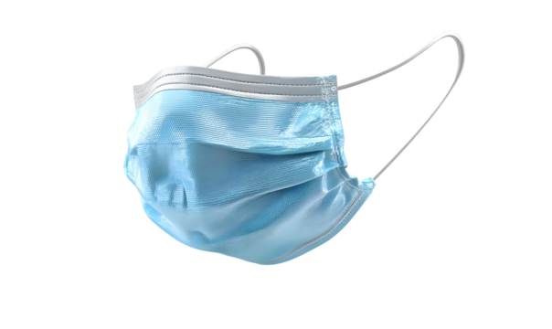 A meticulously rendered medical mask poised in mid air evokes safety and protection measures