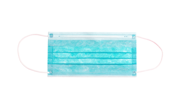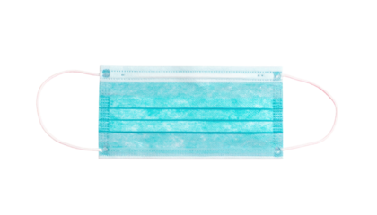 Aqua surgical mask with ear loops, centered on a black backdrop