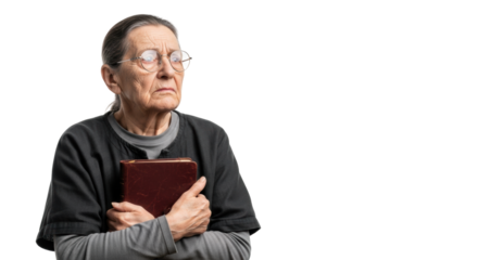 Thoughtful businesswoman contemplating ideas on transparent background