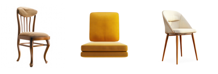 Three chairs against a white background. The furniture concept of modern and contemporary design.