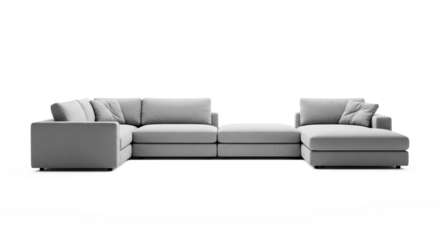 A modern, minimalist sofa with a light gray fabric upholstery and a sleek, contemporary design.