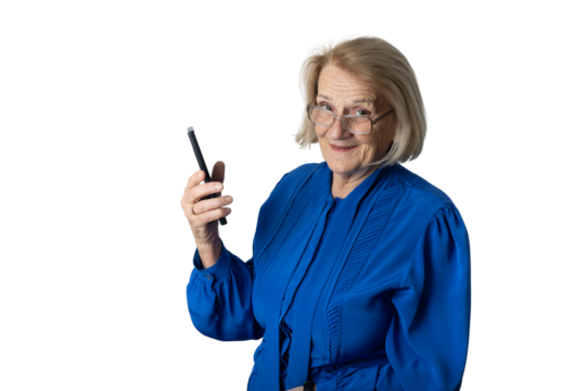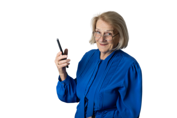 Senior woman using tablet, transparent senior technology concept