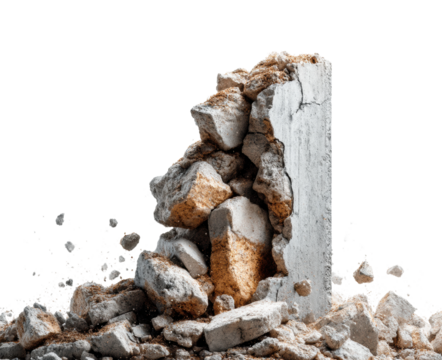Destructive demolition at urban construction sites visual content isolated on transparent background, png