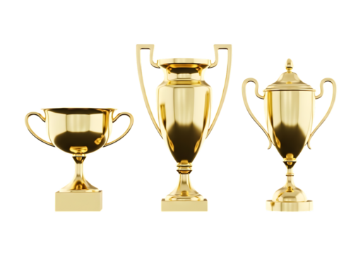 Gold trophy cup symbolizing victory and success, prize winning award for champions, transparent background