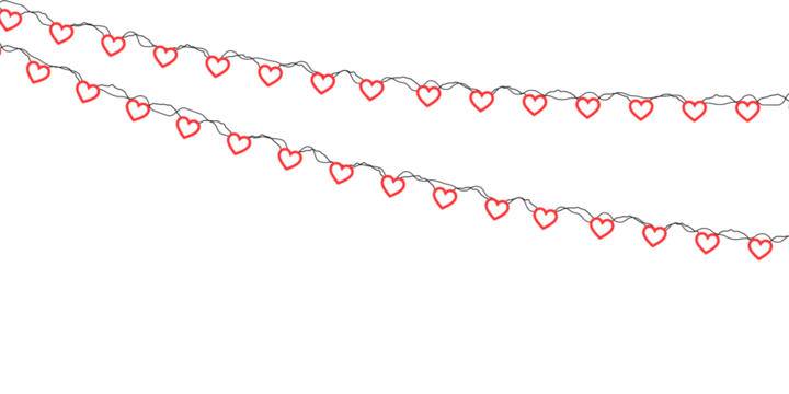 Romantic red heart garland creating a continuous border with cute hanging ornaments perfect for Valentine’s Day messages, party posters, wedding themes and elegant transparent vector illustrations