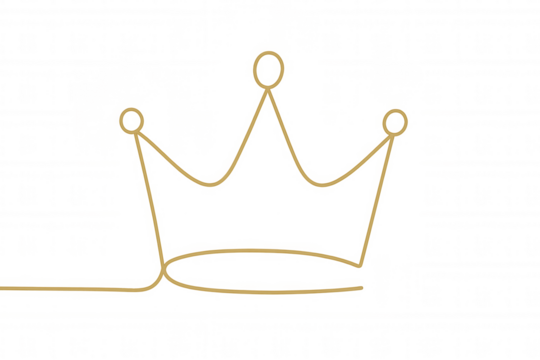 Crown one continuous line drawing, symbol of royalty power leadership authority and success, transparent background