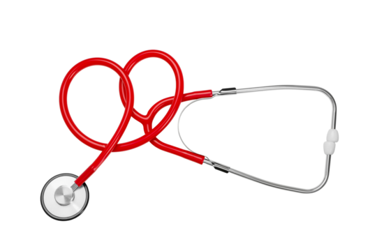 Red heart-shaped stethoscope for healthcare, isolated on white, PNG