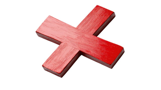 3D Illustration of a Glossy Red X Mark Isolated on Transparent Background
