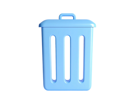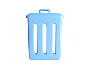 Blue 3D rendered trash bin icon with three vertical slots, lid, handle on black
