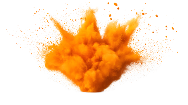Vibrant Orange Powder Explosion on Transparent Background for Creative Design Projects