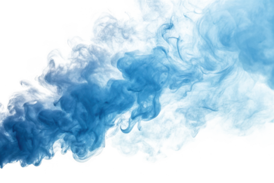 Blue and gray smoke swirls isolated on transparent background