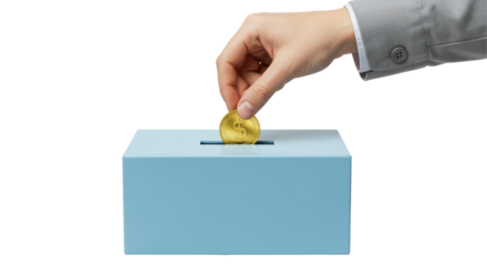 Isolated Hand Inserting Coin into Donation Box