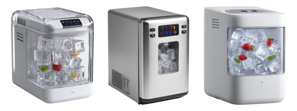 Set of Coffee Brewing Espresso Machines with Glass Cups isolated on transparent background