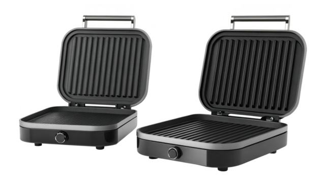 Modern black air fryer with digital control dial, healthy oil free cooking appliance isolated, kitchen gadget for home cooking concept  Isolated on transparent background, png.