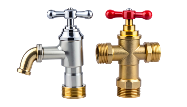 Golden metal beer keg tap spout isolated on black studio background for beverage service isolated on transparent background