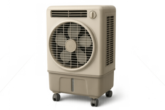 Evaporative cooler or swamp cooler appliance providing cool air for comfortable environment in homes, offices, and rooms