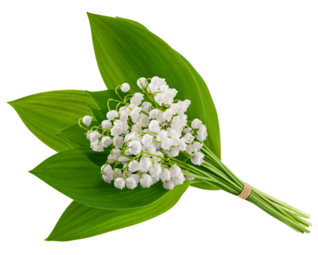 Bouquet of lily of the valley flowers and leaves isolated on transparent