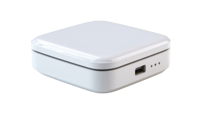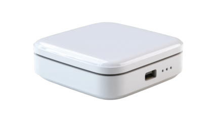 High quality portable white square power bank device for convenient charging modern technology electronic gadget new innovative design portable charger on transparent background