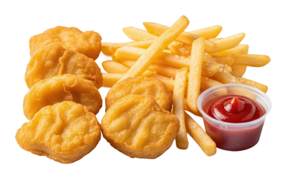 Delicious fast food chicken nuggets and fries for casual dining isolated on transparent background