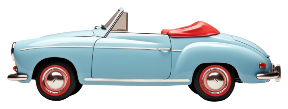 Blue vintage convertible car isolated on transparent background