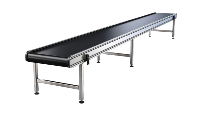 Long Conveyor Belt With Boxes Moving Along  isolated on a transparent background