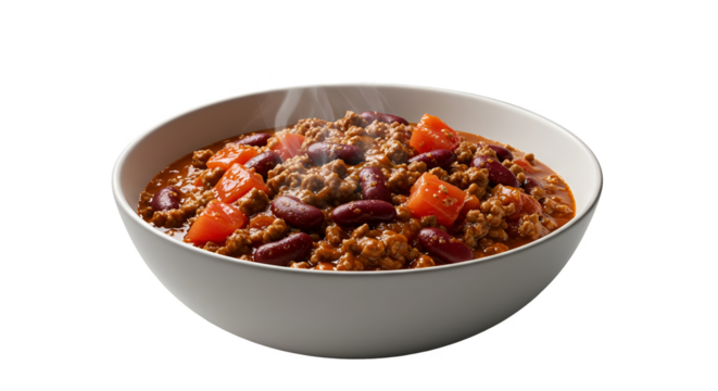 Isolated Bowl of Steaming Chili con Carne Realistic Photo