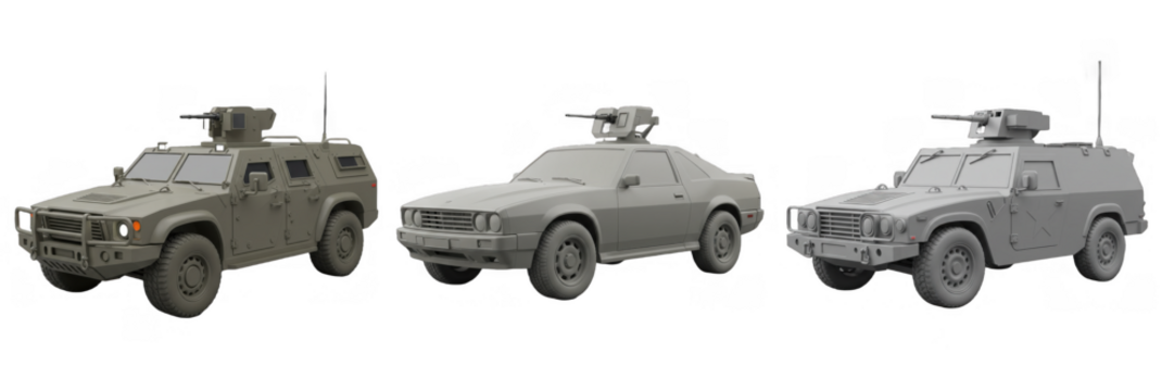 Military combat car armored weapon tactical light reconnaissance patrol vehicle gun turret defense security convoy isolated on transparent background, png file