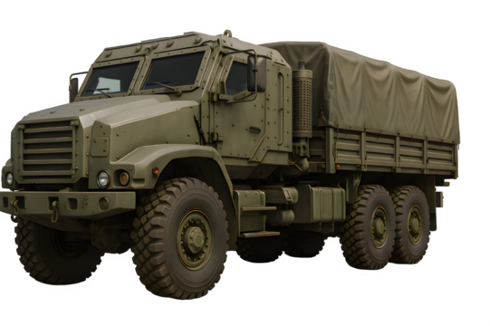 Realistic 3D Armored Military Transport Truck – Transparent PNG