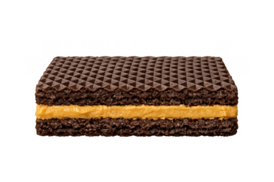Chocolate wafer with peanut butter filling, a delicious dessert snack providing sweet indulgence and crunchy texture