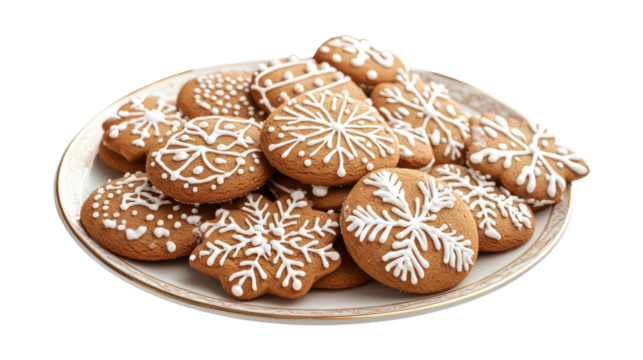 Christmas gingerbread cookies on plate isolated on a transparent background