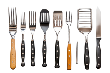 Heavy-Duty BBQ Utensils with Ergonomic Handles for Comfortable Gripping Isolated on Transparent Background