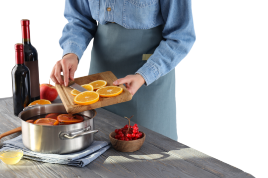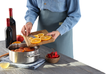 Transparent background woman chef slicing with confidence