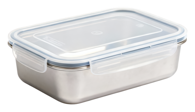 Stainless Steel Lunch Box with Lid Isolated on White