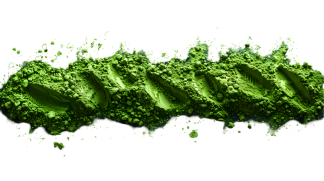 Matcha powder swirls with green tea.