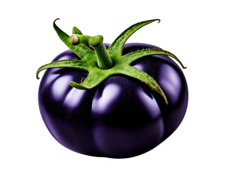 Indigo Rose tomato shows its dark beauty, showcasing a fresh heirloom vegetable with green l.png