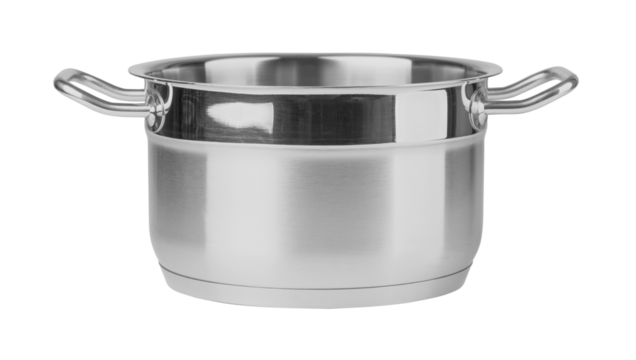 Stainless steel cooking pot, isolated on white background, full depth of field