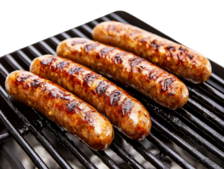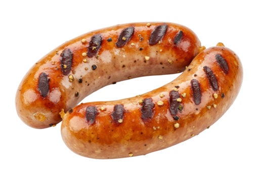 Isolated grilled sausage links, perfect for a summer barbecue meal or a delicious dinner