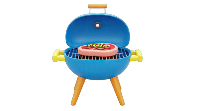 Cartoon Grill with Steak Ready for Barbecue
